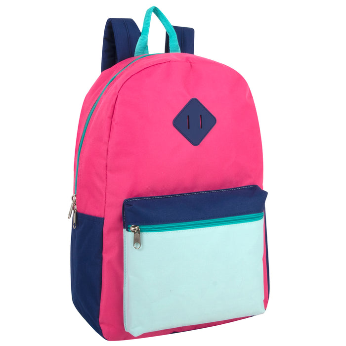 Nagtatampok ang maramihang 17-inch na schoolbag na ito ng matibay na pang-itaas na hawakan, 2 adjustable strap, 2 compartment na may kakaibang accent sa itaas. Ang pangunahing kompartimento ay perpekto para sa mga libro, at ang bulsa sa harap ay mahusay para sa mga lapis, krayola, panulat, atbp. Magugustuhan ng lahat ang mga klasikong backpack na ito.