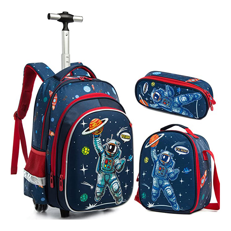 繁体中文Ipinapakilala ang aming High-Quality Trolley Bag for Kids, na dapat mayroon para sa pang-araw-araw na pakikipagsapalaran ng iyong anak! Ang trolley bag na ito ay idinisenyo na nasa isip ng mga bata, na ginagawang mas madali at mas masaya ang kanilang buhay. Narito ang ilan sa mga tampok na nagpapatingkad sa trolley bag na ito: