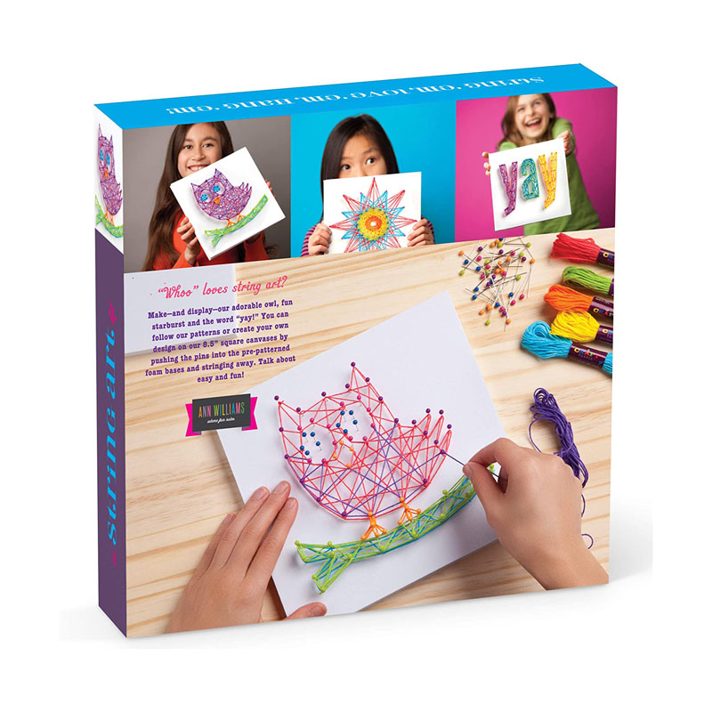 · STRING EM’, LOVE EM’, DISPLAY ‘EM: Ang craft kit na ito ay madaling gamitin para sa mga artistikong bata 10+. Itinutulak lang ng mga maarteng bata ang mga pin sa mga paunang naka-pattern na foam base at nakatali. Kapag natapos na sila, madaling maisabit ang likhang sining upang ipakita sa mga kaibigan at pamilya.